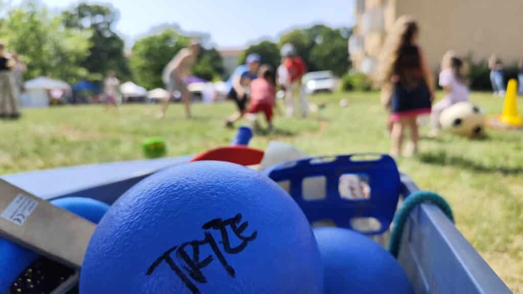 Das offene Bewegungsangebot TRYZE.mobil unserer Stiftung Aktion Hilfe für Kinder war am vergangenen Freitag, 20. Juni 2025, zu Gast auf dem bunten Sommerfest des Bremer Schweizer Viertels. An unserem Stand auf der großen GEWOBA-Wiese im Innenhof der Tessiner Straße und Graubündener Straße hieß es für die Kinder: hüpfen, springen, tanzen, malen, Fußball spielen und vor allem viel Spaß haben.