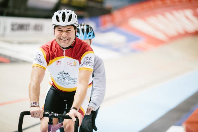 Erstmals sausen die Tandems über die Rennstrecke der Sixdays Bremen. Blinde und sehbehinderte Kinder der...