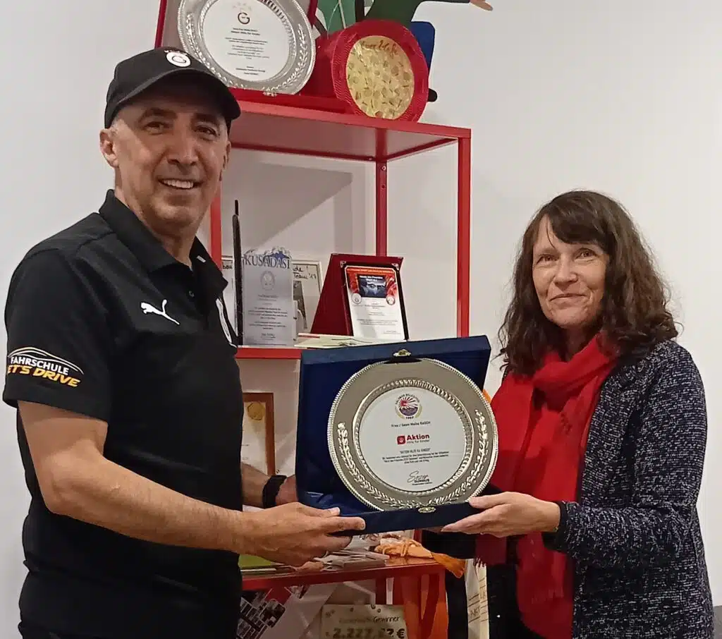 Hasan Küsneci von Galatasaray Sport- und Fanclub Bremen e. V. mit Meike Rasch, Vorstandsvorsitzende Aktion Hilfe für Kinder