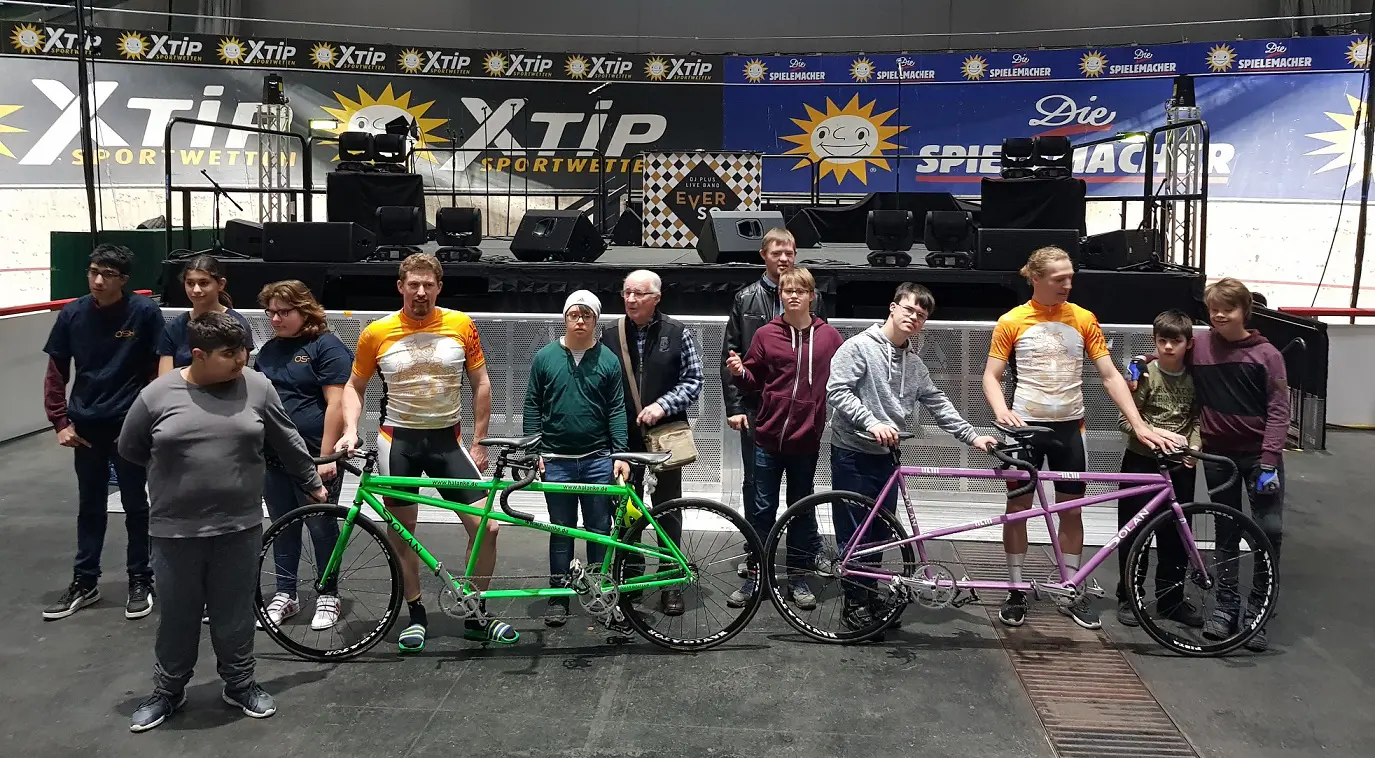 Auf speziell angefertigten Tandems nahmen die erfahrenen Radrennfahrer Karsten Wörner und Luca Zetsche die mutigen Kopiloten des Vereins „21 Hoch 3“, des Gymnasiums Vegesack sowie der Oberschule an der Hermannsburg mit nach ganz oben in die Steilkurve und bescherten ihnen ein Bauchkribbeln, das sie so schnell sicher nicht vergessen werden.