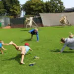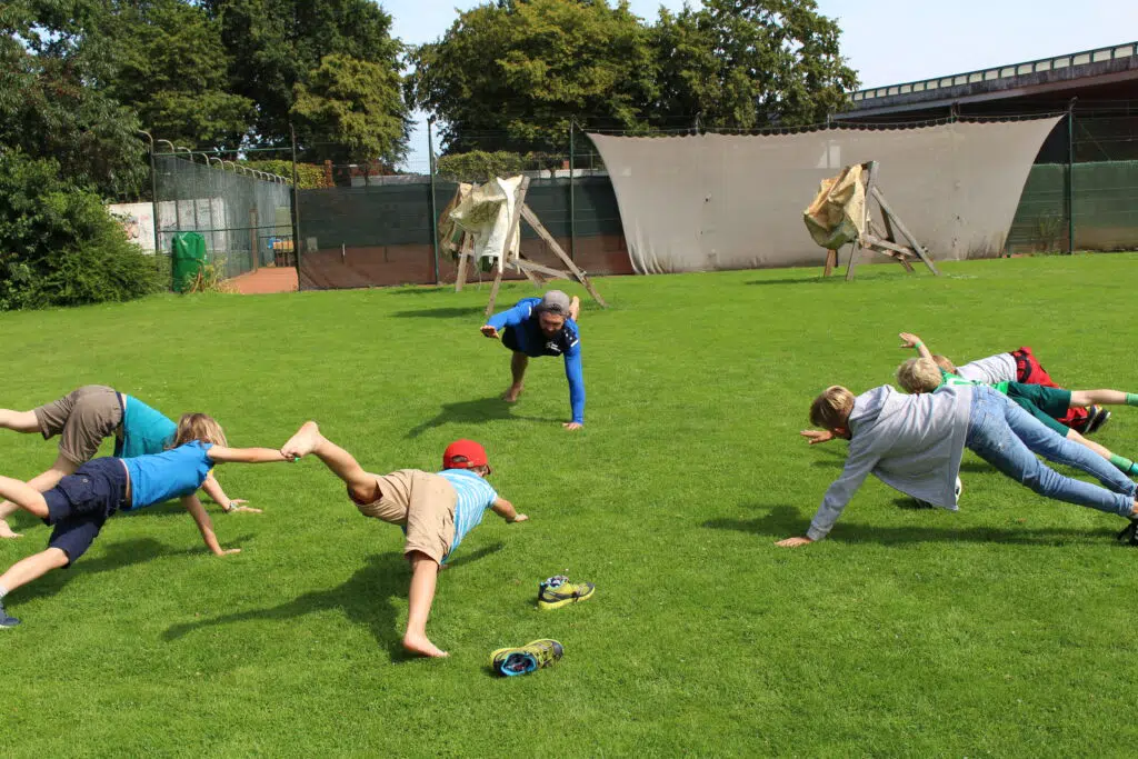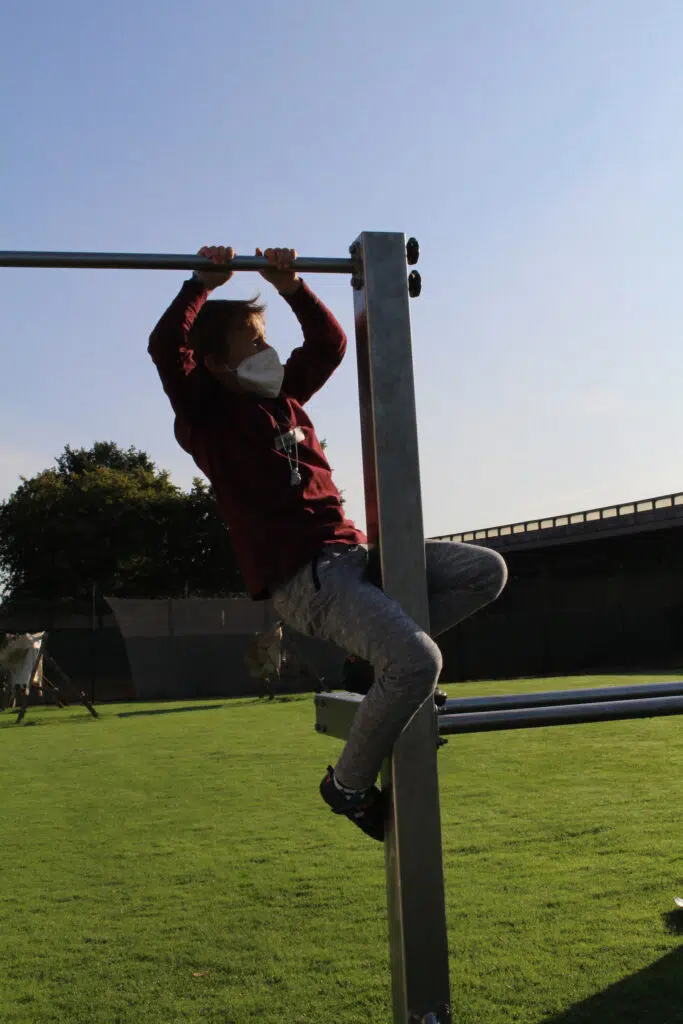 Jeden Tag können die Kinder, nach einer gemeinsamen Mittagspause, ausgiebig toben, sich kreativ bei Bastelaktionen entfalten oder in der Chill-Ecke etwas Ruhe finden. Der Verein Aktion Hilfe für Kinder bietet dieses Jahr bei „Bremopolis“ ein Sportangebot für an. Unser Trainer Sergej Rossel leitet die Kinder in der Projektwoche, von Montag bis Donnerstag, an und macht mit ihnen unterschiedliche Fitnessübungen, mit dem eigenen Körpergewicht und an Turnstangen. Dabei können sich die Kinder ausprobieren, sich gegenseitig anfeuern und auch einen Kopfstand mit Hilfestellung wagen.