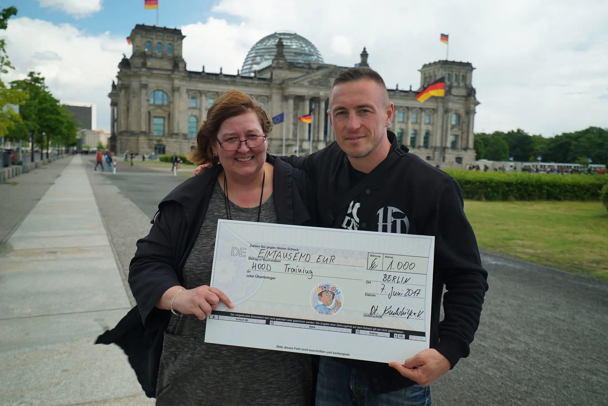 Hood Training erhält Spendencheck von dem Verein Deutsche Kinderhilfe e.V.