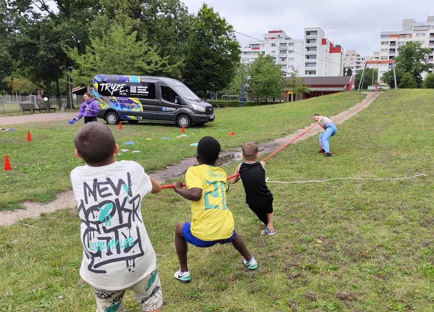 Besonders unser TRYZE.mobil erfreute sich großer Beliebtheit bei den Kindern. Von Fußballspielen über kreative Tattoos malen bis hin zum Gestalten von Ansteck-Buttons – die Teilnehmer:innen waren ganz begeistert von unserem Angebot.
